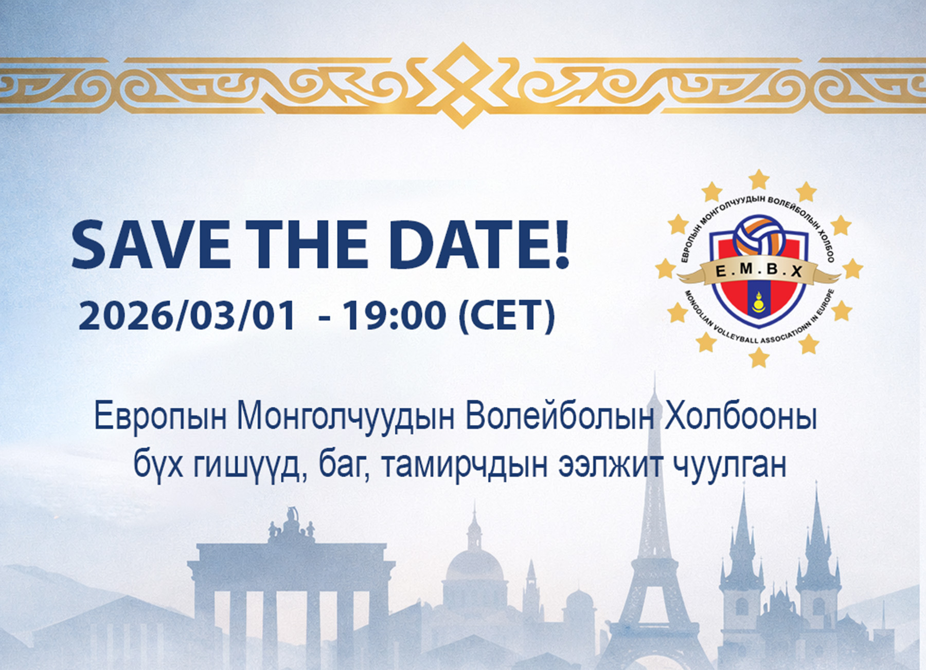Европын Монголчуудын Волейболын Холбооны бүх гишүүд, баг, тамирчдын ээлжит чуулган