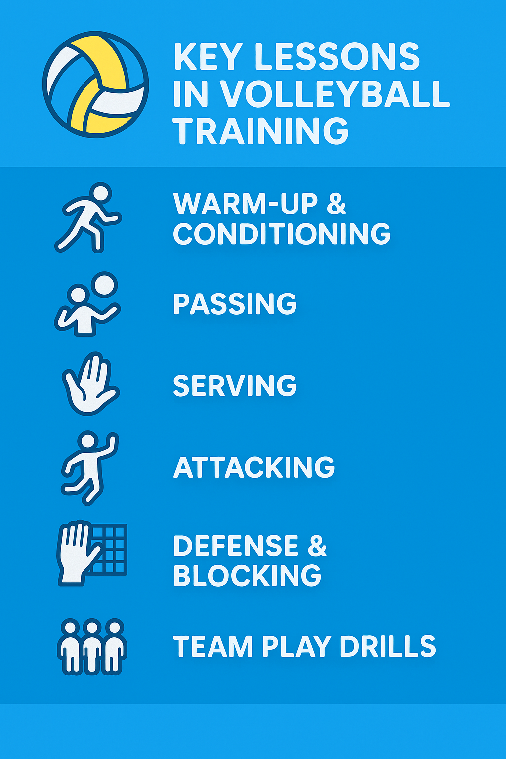 Волейболын спорт бол зөвхөн тоглоом биш, багийн ажиллагаа, хурд, авхаалж самбаа, биеийн болон оюун санааны тэсвэр хатуужлыг хамтад нь хөгжүүлдэг цогц бэлтгэл юм. Дэлхий даяар хэрэгждэг сургалтын төлөвлөгөөнүүдийг нэгтгэн үзвэл волейболын сургалт дараах үндсэн чиглэлүүдээс бүрддэг байна.